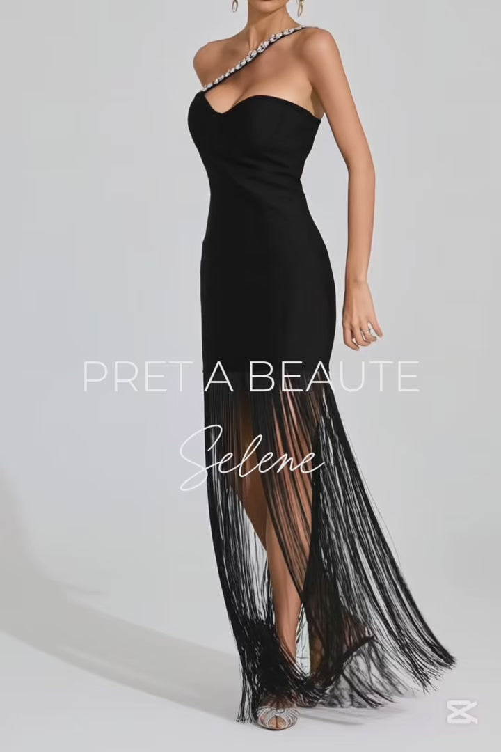Selene Ελαστικό Φόρεμα με Κρόσσια | Evening Dresses - Φορέματα - Βραδινά | Selene One-Shoulder Maxi Dress with Fringes