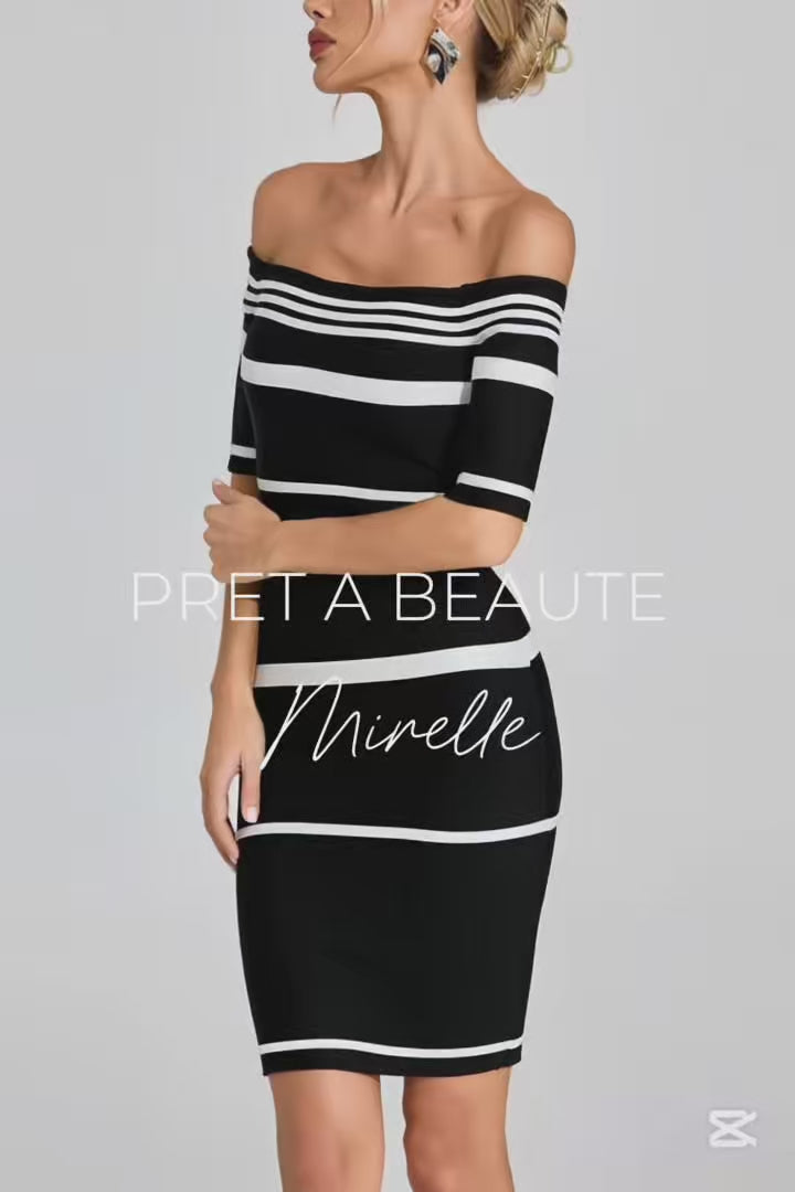 Mirelle Εφαρμοστό Ριγέ Φόρεμα με Παρτούς Ώμους | Φορέματα - Dresses | Mirelle Off-Shoulder Striped Dress