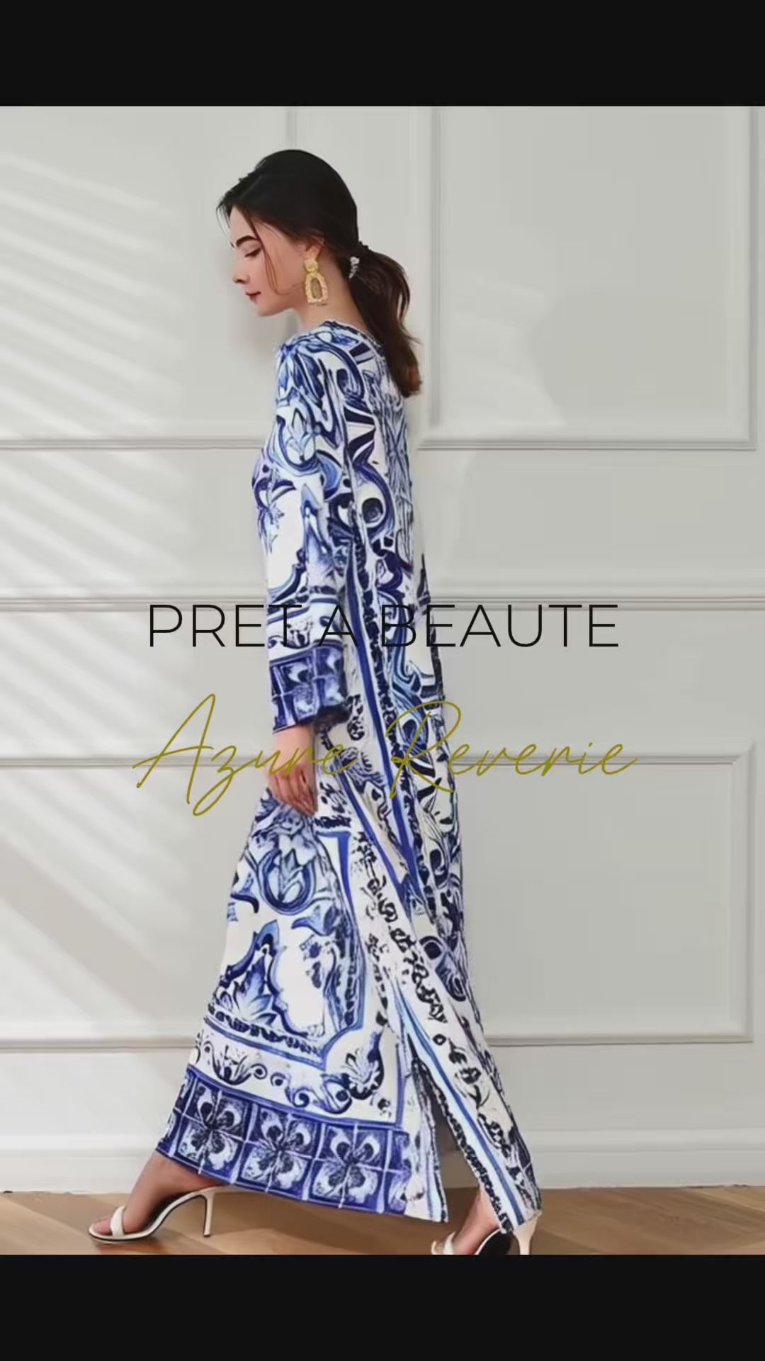 Μπείτε σε έναν κόσμο διαχρονικής μεσογειακής κομψότητας με το φόρεμα Azure Reverie. Φτιαγμένο από ελαφρύ πολυεστέρα, το φόρεμα Azure Reverie εντυπωσιάζει με το ψηφιδωτό σχέδιο σε ζωντανές αποχρώσεις του μπλε και του λευκού. Η αέρινη maxi γραμμή, τα χαλαρά μακριά μανίκια και οι περίτεχνες λεπτομέρειες στη λαιμόκοψη αποπνέουν ανεπιτήδευτη φινέτσα – ιδανικό για αποδράσεις δίπλα στη θάλασσα ή καλοκαιρινές all-day εμφανίσεις. Αφεθείτε στη μαγεία του και ταξιδέψτε νοερά σε ηλιόλουστες ακτές και νυχτερινές βόλτες.