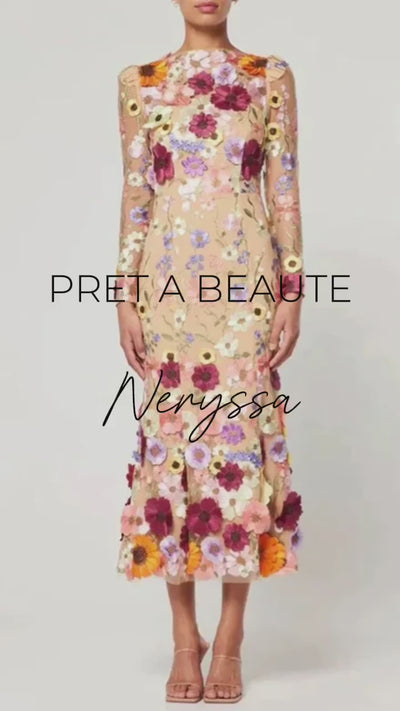 Αναδείξτε τη θηλυκή πλευρά σας με το φόρεμα Neryssa. Μια πανδαισία λουλουδιών σε ένα ιδιαίτερο φόρεμα που θα τραβήξει τα βλέμματα. Με στρογγυλή λαιμόκοψη και μακριά μανίκια το φόρεμα Neryssa δημιουργεί ένα εντυπωσιακό αποτέλεσμα. Αποτελεί ιδανική επιλογή για γάμους και βαπτίσεις. Συμβουλευθείτε τον πίνακα μεγεθών πιο κάτω για σωστή επιλογή μεγέθους.